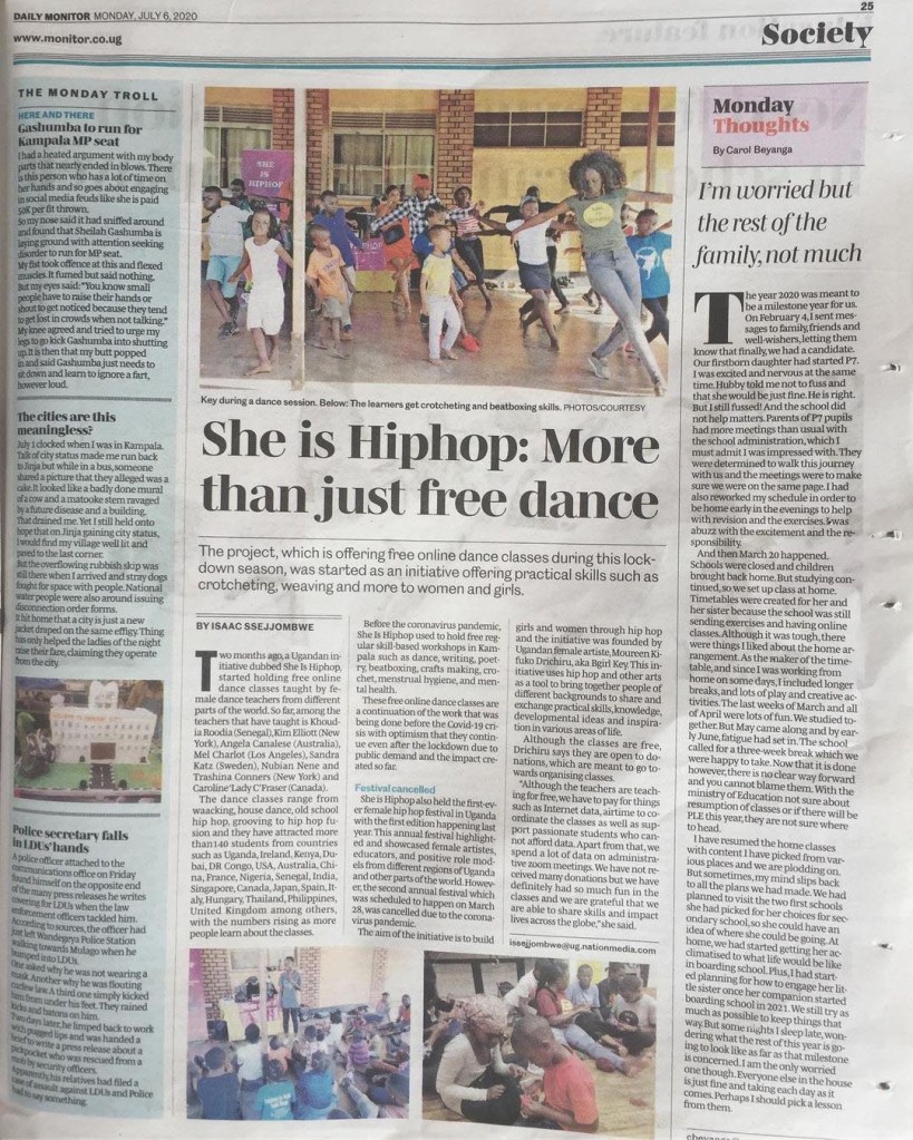 Daily Monitor – New article about She Is Hiphop on 6th July 2020. Story by Isaac Ssejjombwe from Daily Monitor.