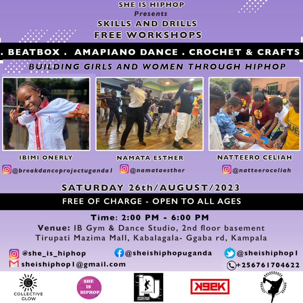 She Is Hiphop “Skills and Drills” FREE Beatbox, Amapiano dance, Crochet & Crafts workshops! On Saturday, 26th August 2023 at IB Gym and Dance Studio on the 2nd basement floor, Tirupati Mazima Mall, Kabalagala, Ggaba Road, Kampala, Uganda. The workshops will start at 2:00 pm until 6:00 pm. They FREE of charge and open to…